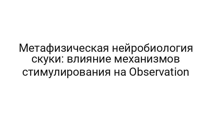 Метафизическая нейробиология скуки: влияние механизмов стимулирования на Observation